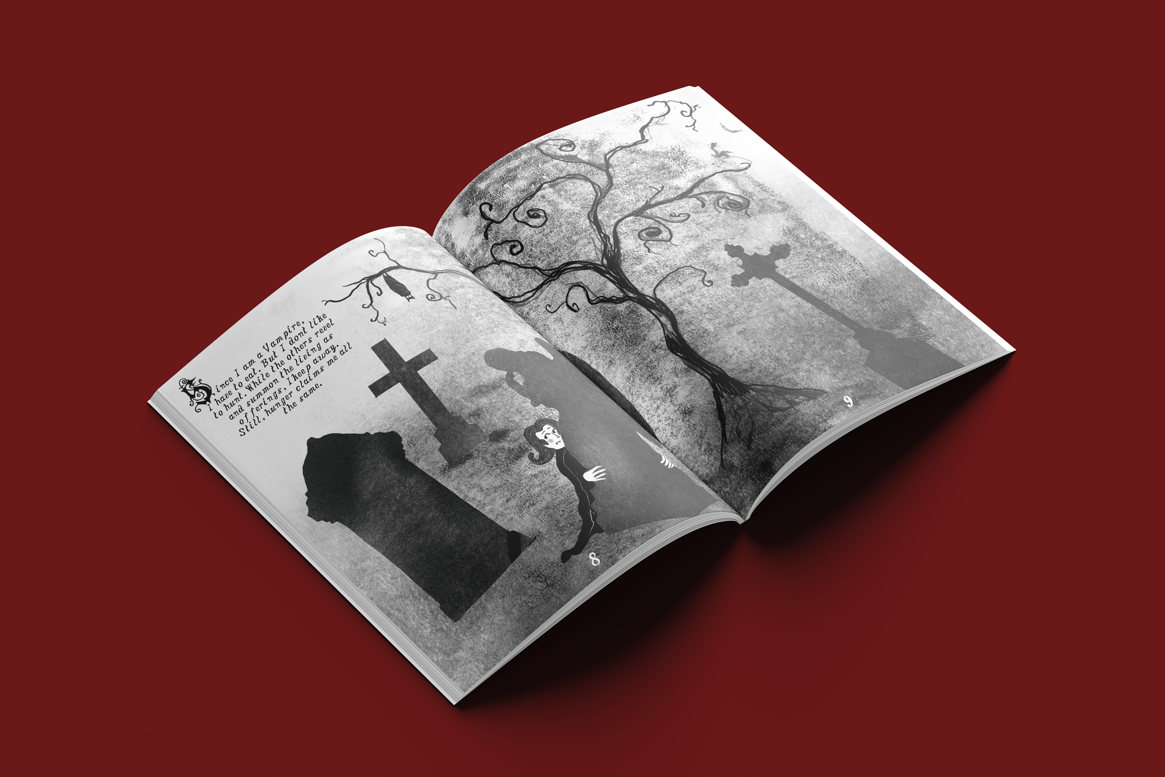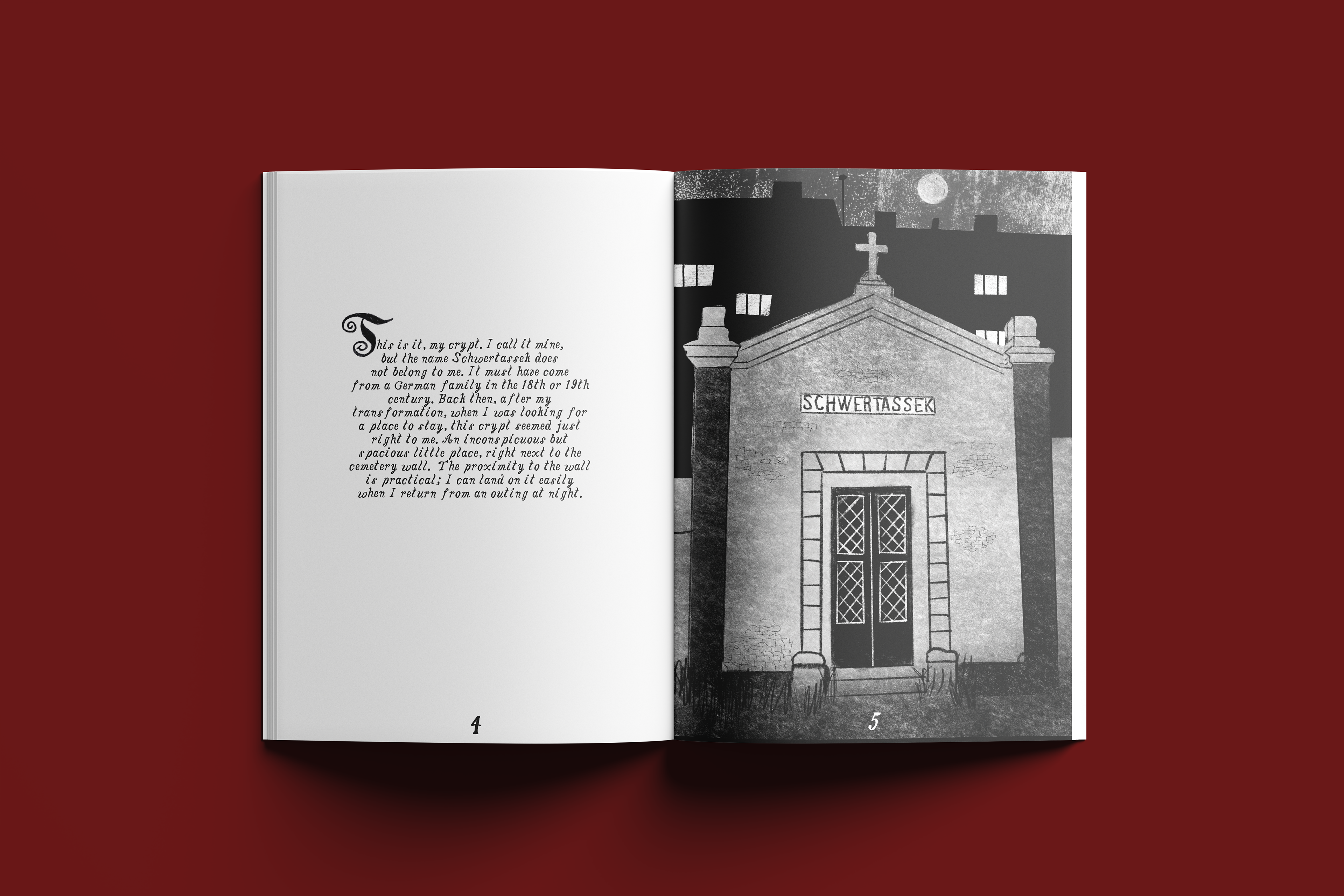 According to legend, Prague's only vampire lives in Olšany Cemetery. They are not a particularly scary bloodsucker, but a rather shy fellow. To quench their thirst, they wait among the gravestones for clumsy cemetery visitors to stumble. Then they lick the scrapes. This has earned them the nickname Bloody Knee (cz. ‘krvavé koleno’). One day, the vampire meets the knee of their dreams, and suddenly love is in the air. Can romance between human and vampire actually work?